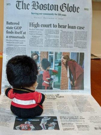 As most of you know, the royals, William and Kate, were here in Boston a week ago. Our Guys have been very excited about this! Sir Oliver was beside himself when he saw this photo in the Globe showing an 8-year-old boy, dressed like a palace guard, presenting William and Kate with flowers!