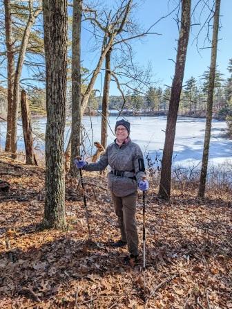 A few days ago, we decided to emerge from “hibernation” and go for a hike at our favorite state park. This is also where we love to kayak in the summer. It was a glorious sunny day without a cloud in the sky. There was snow on the ground and the sun made it sparkle. The reservoir was also covered in snow.