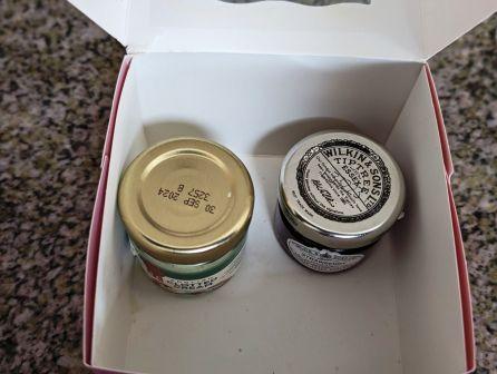 I had several leftovers, which I brought home in a cute little pink box. I was looking forward to enjoying them later. I got home and put them in the fridge. Later, I come back downstairs and I see Mr. Ken in the kitchen, with crumbs on his face. Before I had a chance to say anything, he said, “Boy those leftovers were really good!” Sigh, so much for leftovers. The only things left in the box were the clotted cream and jam. I have a feeling that those will be gone soon too.