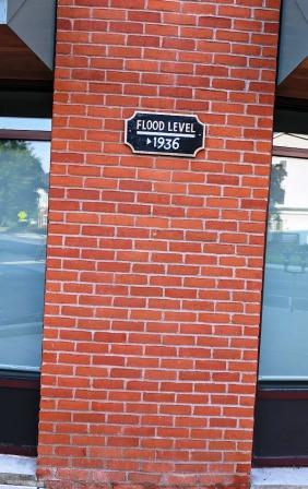 Flooding again happened in 1936. For two weeks, beginning in mid-March, 1936, snowmelt and heavy rain inundated the Connecticut River Valley, causing the worst floods in regional history. The winter of 1935–36 had been especially hard, with large snowfalls and extended periods of cold weather. There are many buildings showing the high water levels. This picture below shows just how high the water went! It is hard to tell from the picture, but this level is well over 6 feet!