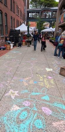 Tuesdays are Farmers Market Days. Last year I bought the most delicious strawberries at the Market. Alas, this year, we were too early for strawberries. I just love the chalk drawings, made by anyone who wanted to draw.