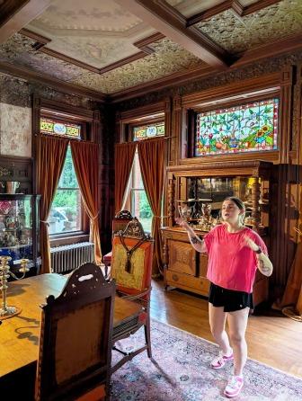 Here’s the dining room. The animated young lady was our tour guide. During the school year she teaches at the local elementary school. She was a great tour guide and I can just imagine she is a wonderful teacher. She is so enthusiastic.