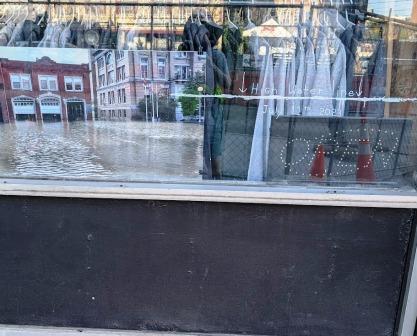 When I was taking my walks, the river looked very calm and peaceful. The river actually looks low. It is hard to imagine that it rose so high that it covered a bridge and a lot of the streets!